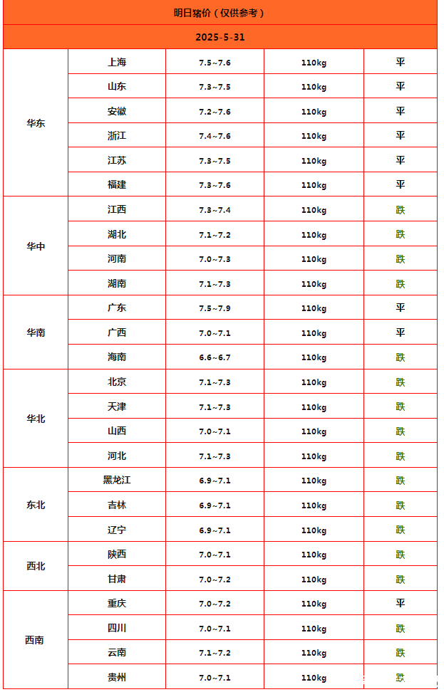 附:2025年5月31日生猪出栏成交价,仅供参考!
